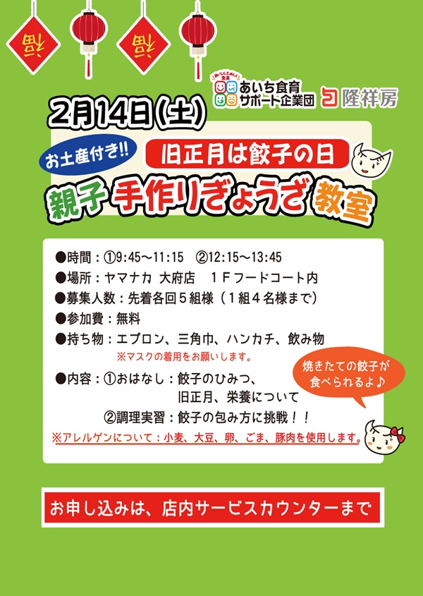 • 旧正月は餃子の日 親子手作りぎょうざ教室を開催します